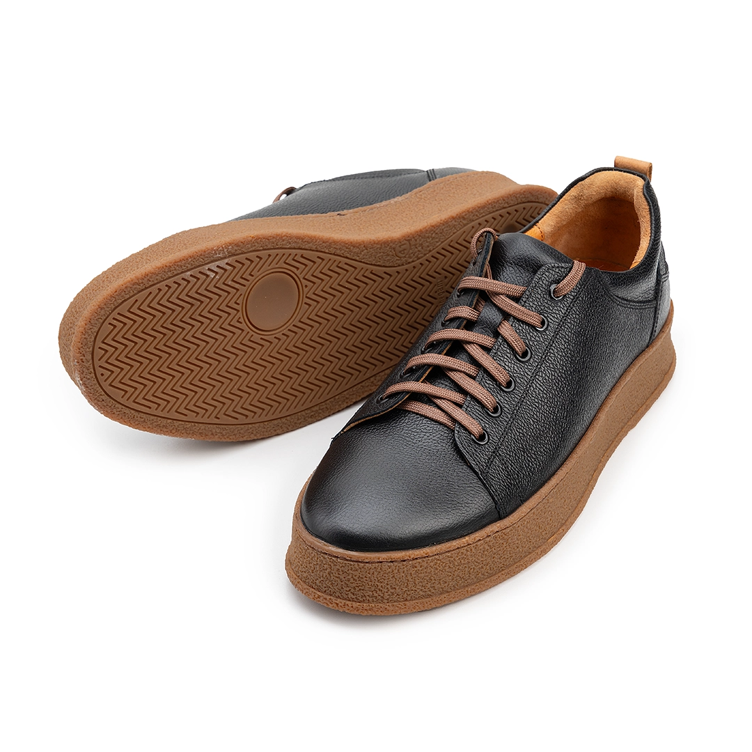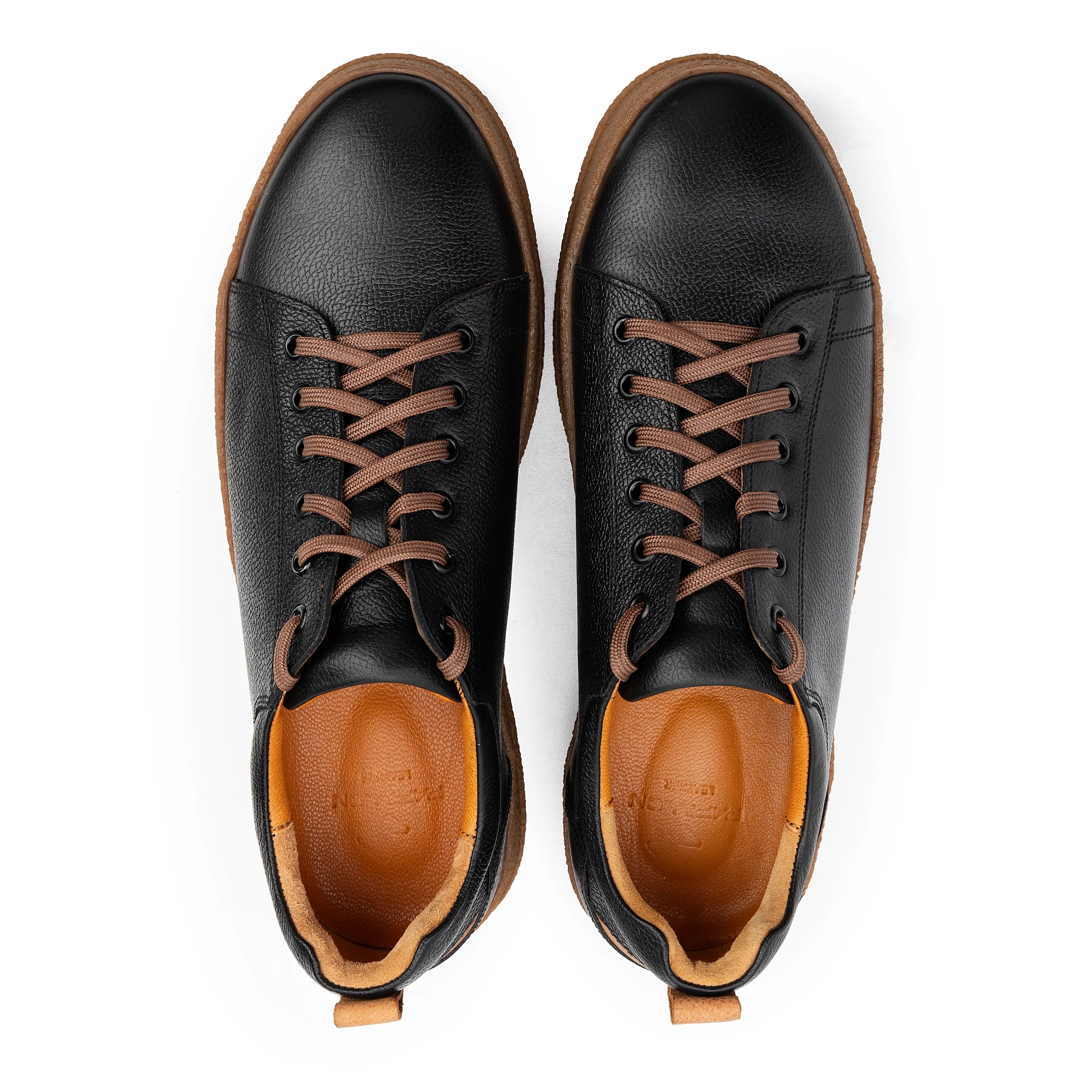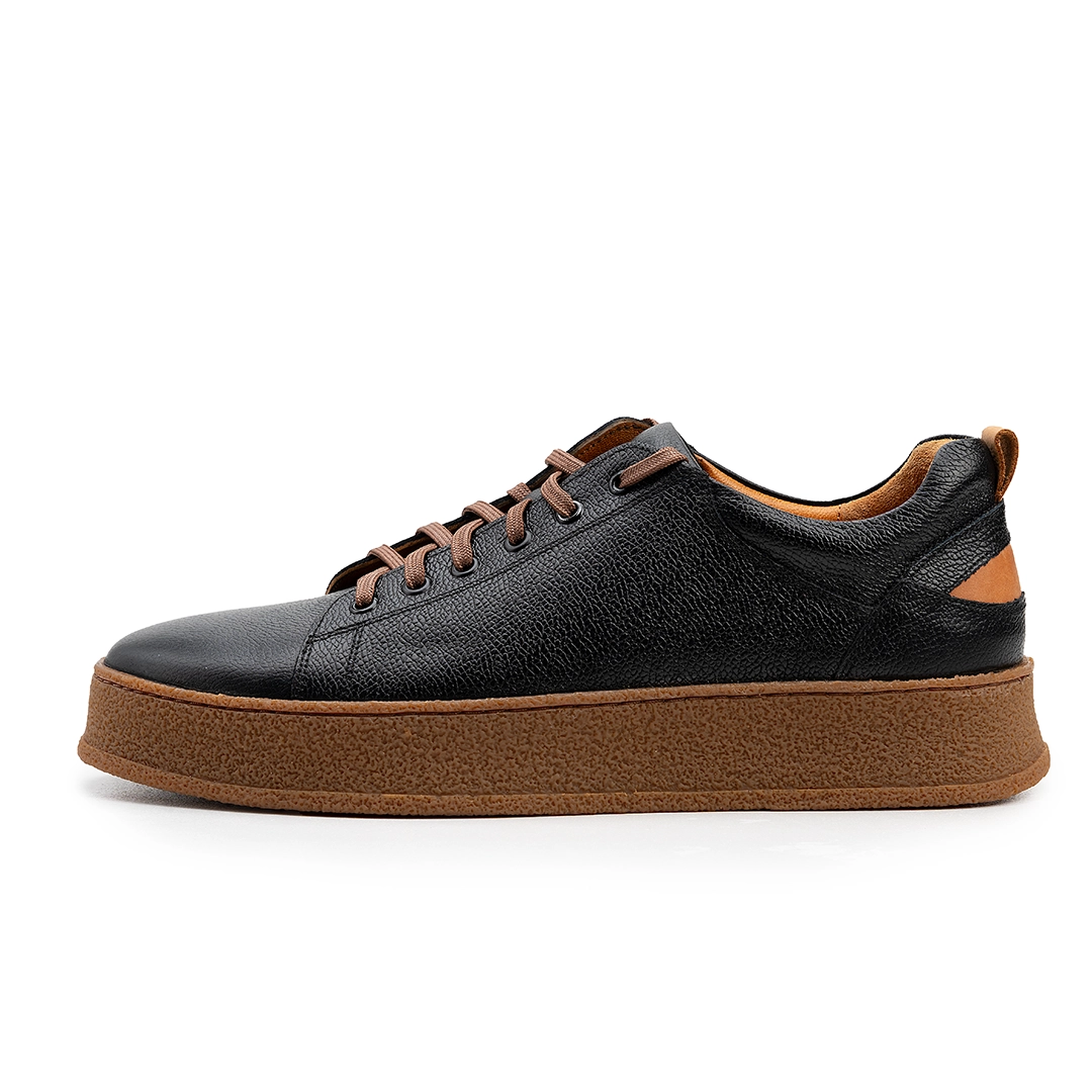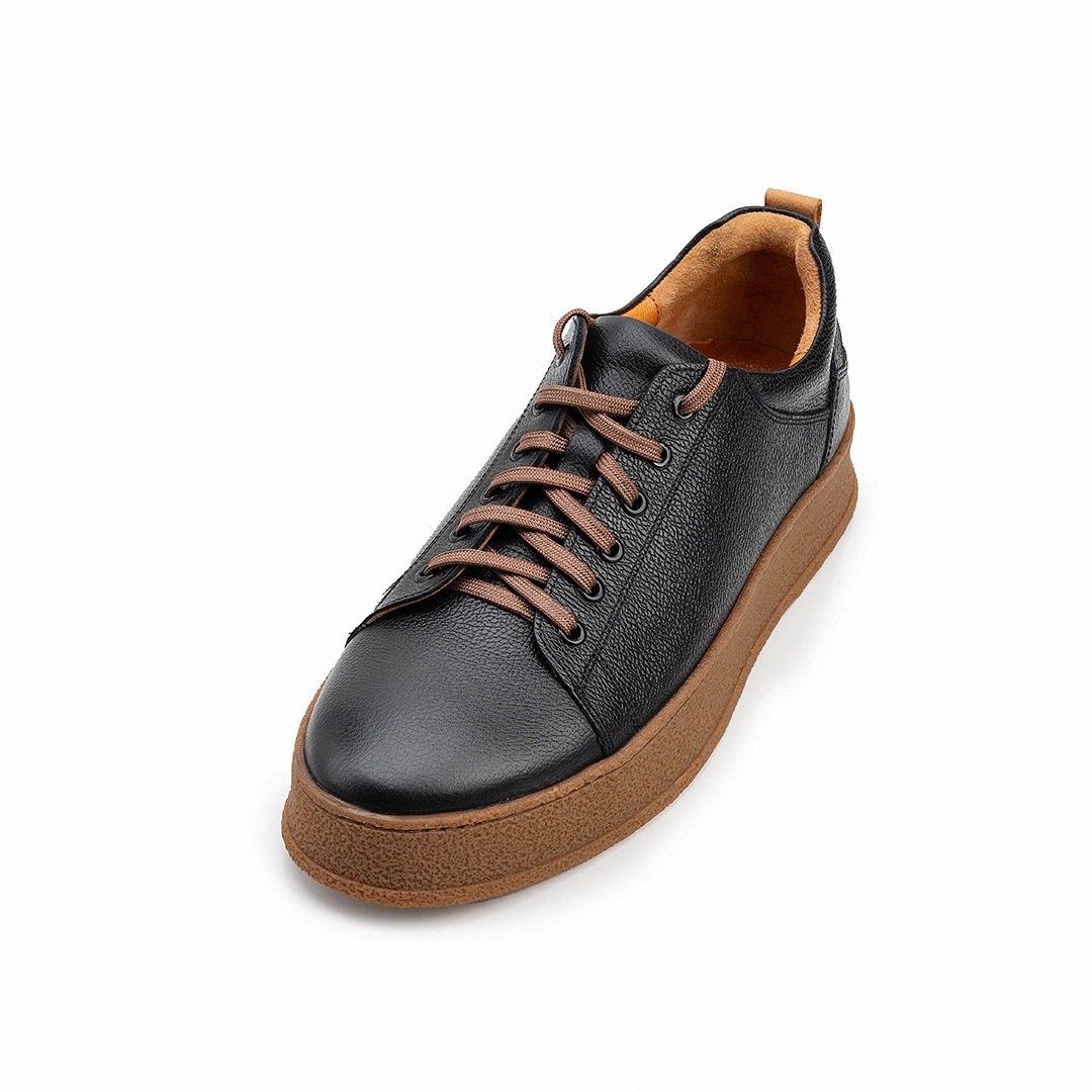ترکیب رنگ مشکی رویه با زیره قهوه‌ای باعث شده این کفش ظاهری کژوال و در عین حال شیک داشته باشد. طراحی ساده اما مدرن آن به راحتی با انواع استایل روزمره، شلوار جین، کتان یا حتی لباس‌های نیمه‌رسمی ست می‌شود. بندهای قهوه‌ای کفش نیز جلوه‌ای هماهنگ و جذاب ایجاد کرده‌اند.