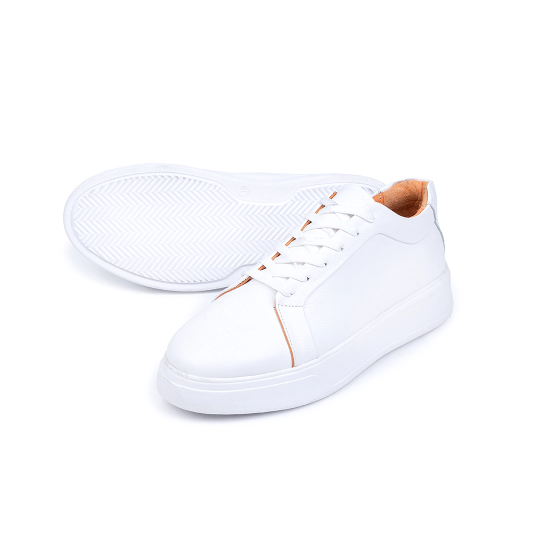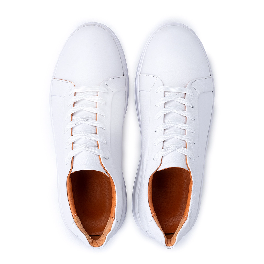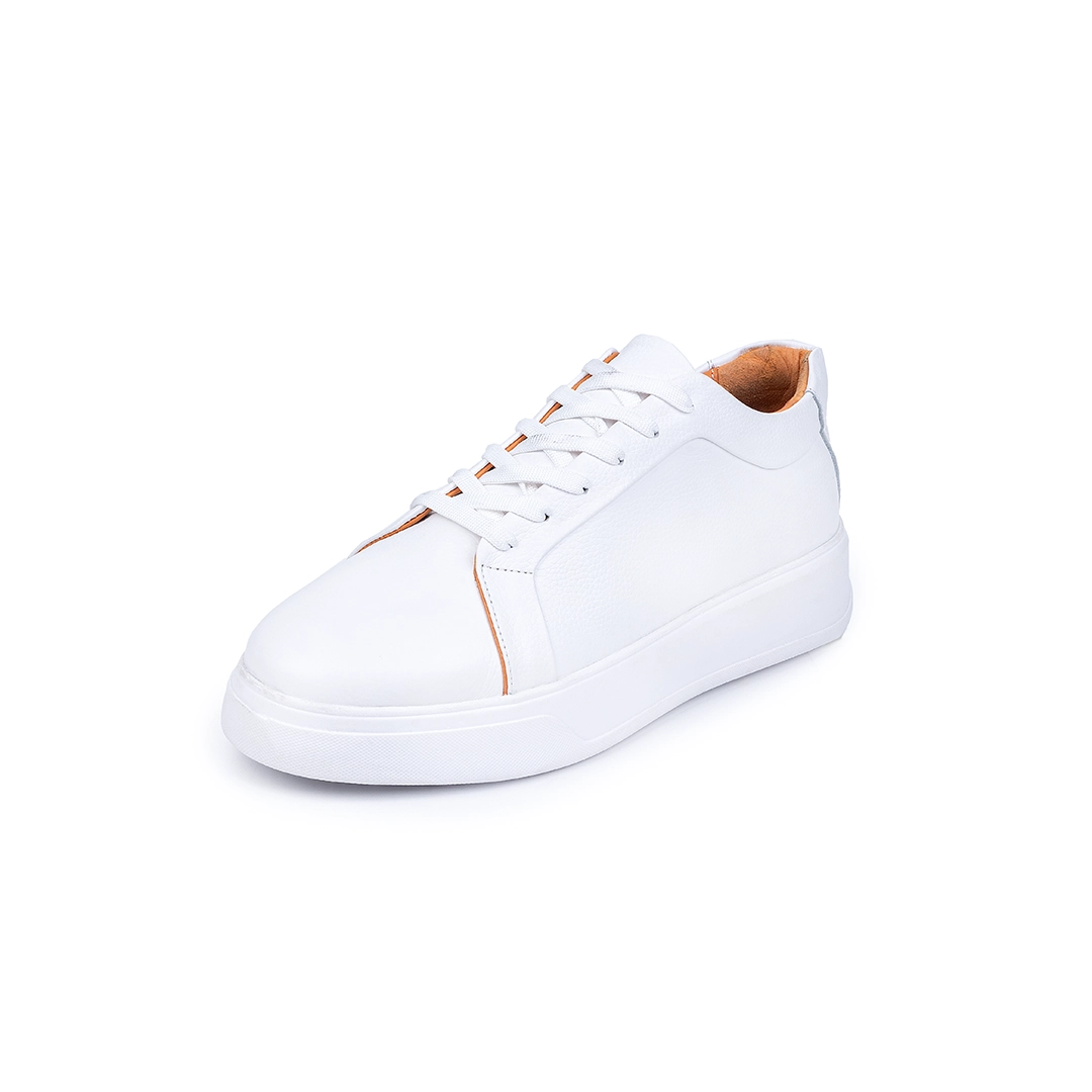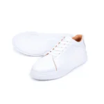 کفش چرم ونس دیوان مردانه با رنگ سفید، رویه از چرم طبیعی گاوی ناپا، بند و زیره سفید، راحت و شیک برای استفاده روزمره، محیط شهری و استایل نیمه‌رسمی.