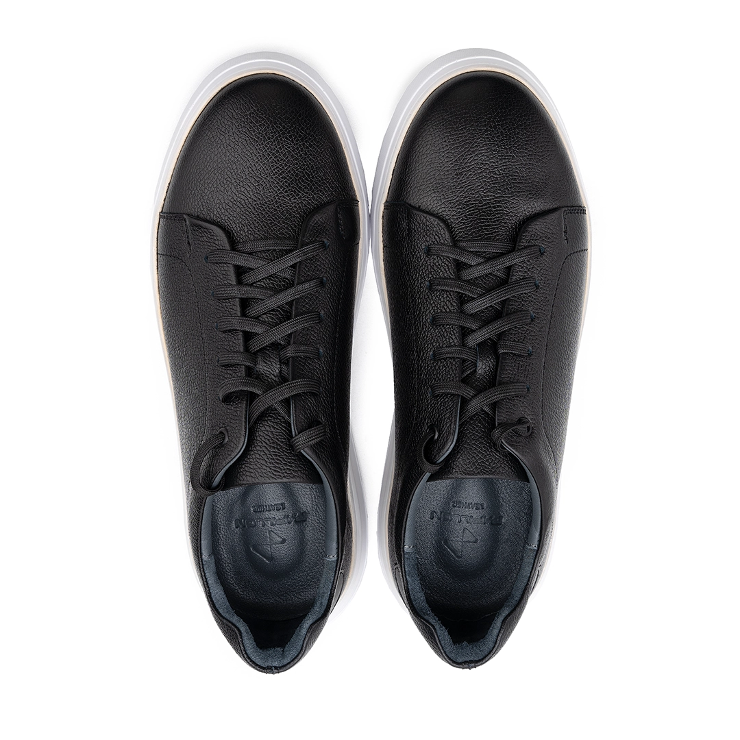 کفش چرم ونس رویال با رنگ‌های سرمه‌ای، مشکی و سفید، چرم طبیعی گاوی فلوتر، بند ساده و زیره سفید، انتخابی شیک و راحت برای آقایان با سایز ۴۰ تا ۴۴ است.